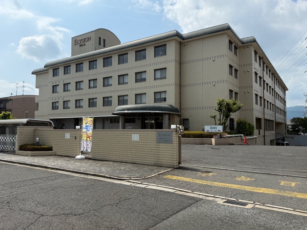 駐車場の南側にある建物が、特別養護老人ホームおきなの杜になります。正面玄関からお入りください。